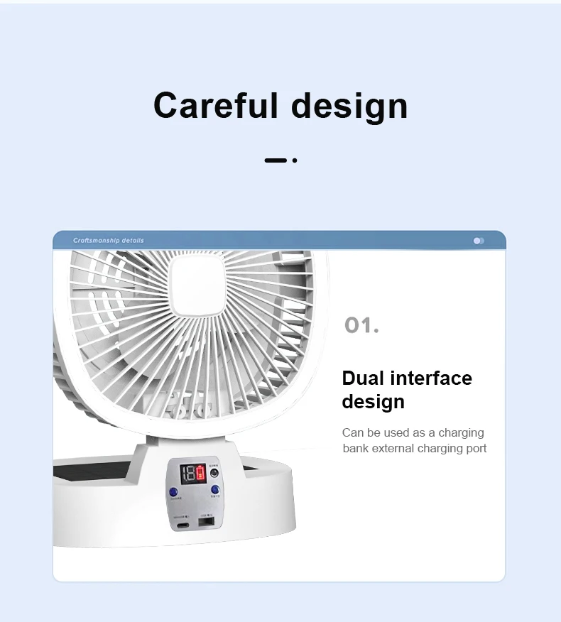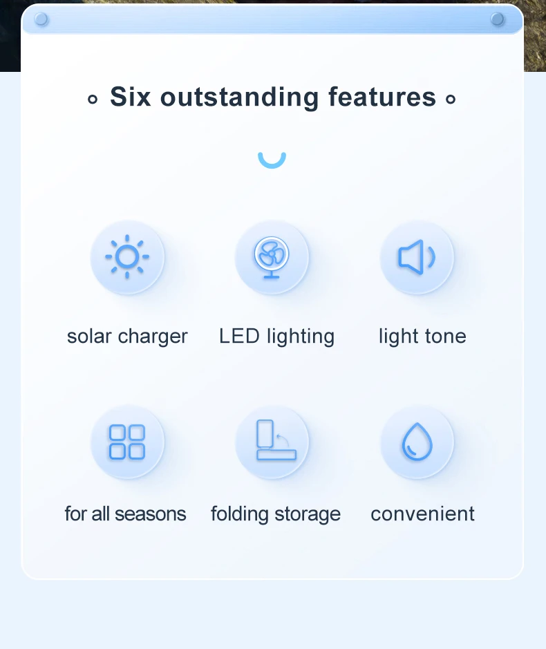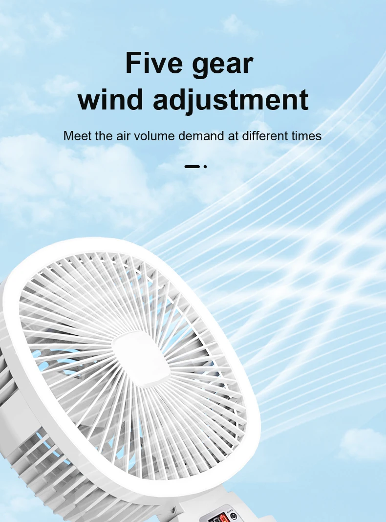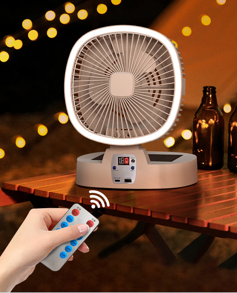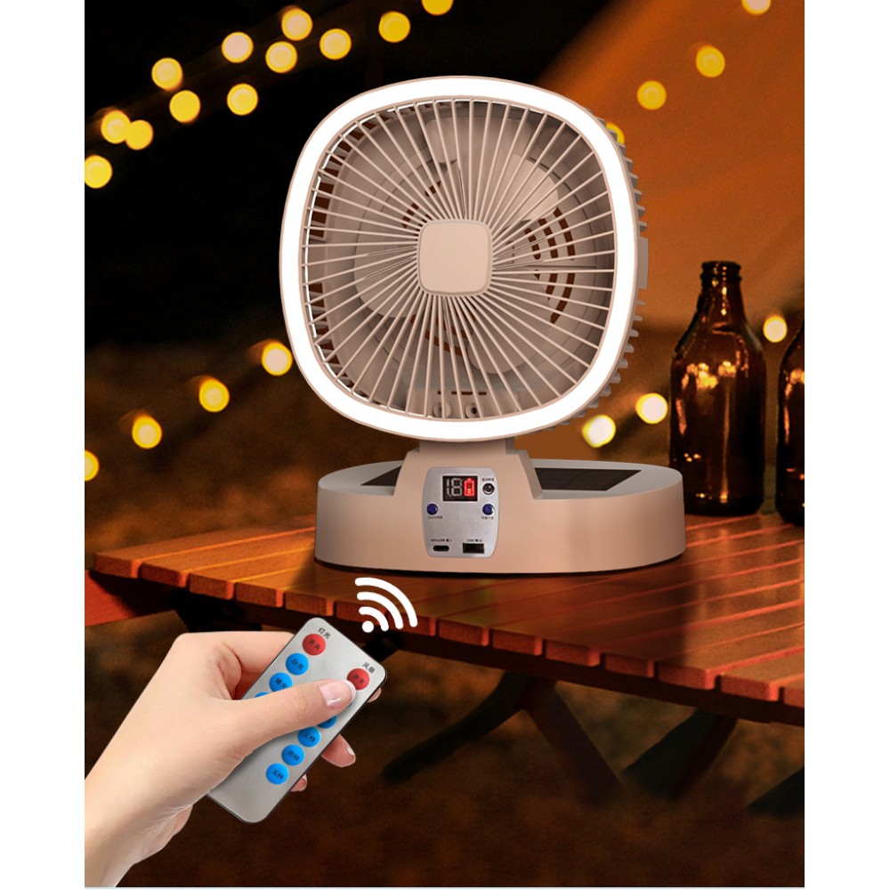 Outdoor Camping Fan Solar Rechargeable Ultra Long Range Wireless Portable Dimming Electric Fan
